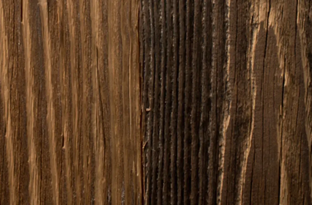 Barnwood is a mix of Pine, Fir, and Spruce (Pinus, Abies, Picea) reclaimed from buildings across Northern Europe. Its natural knots create a rustic look, and its colour comes from years of natural ageing, revealed after the weathered surface is brushed and cleaned. Brushing also enhances the grain’s texture. Over time, exposure to the elements will allow the cladding to develop a silver-grey patina as it re-weathers. | 8-14% | 360-460 kg/m3 | Class 3 & 4: Moderately/Slightly Durable | Small / Medium | Stainless Steel and End Grain Sealer. |