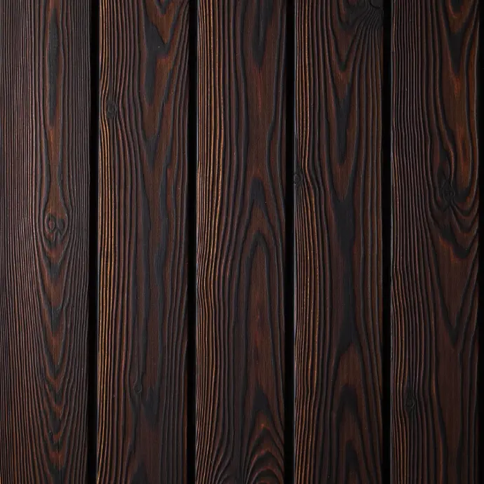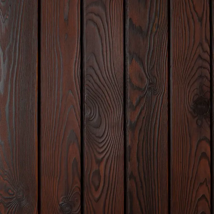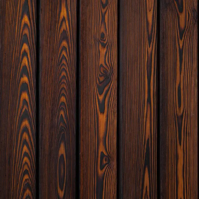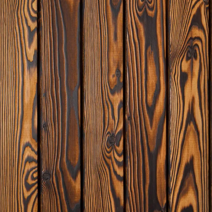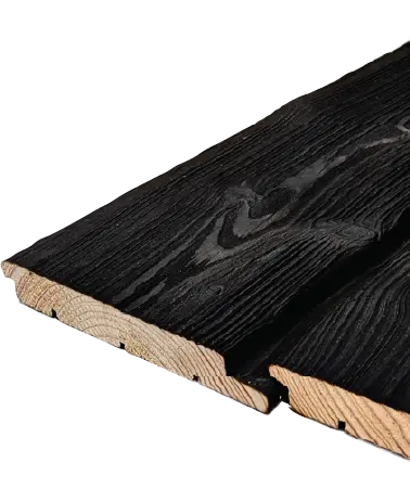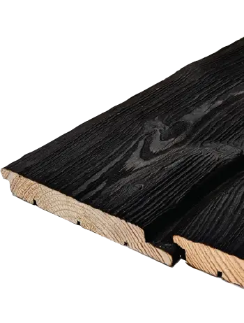 This product is made from European larch (Larix), a species known for its expressive grain pattern and characteristic knots. The timber is brushed to remove the soft char and accentuate the natural texture of the grain. Most of the available finishes are brushed, accentuating the natural growth rings & grain, however others have a deep charred texture as achieved when the timber is treated after charring before brushing (only available in black). | 16-18% | >550 kg/m3 | Class 3 & 4: Moderately/Slightly Durable | Small / Medium | Stainless Steel and End Grain Sealer. |