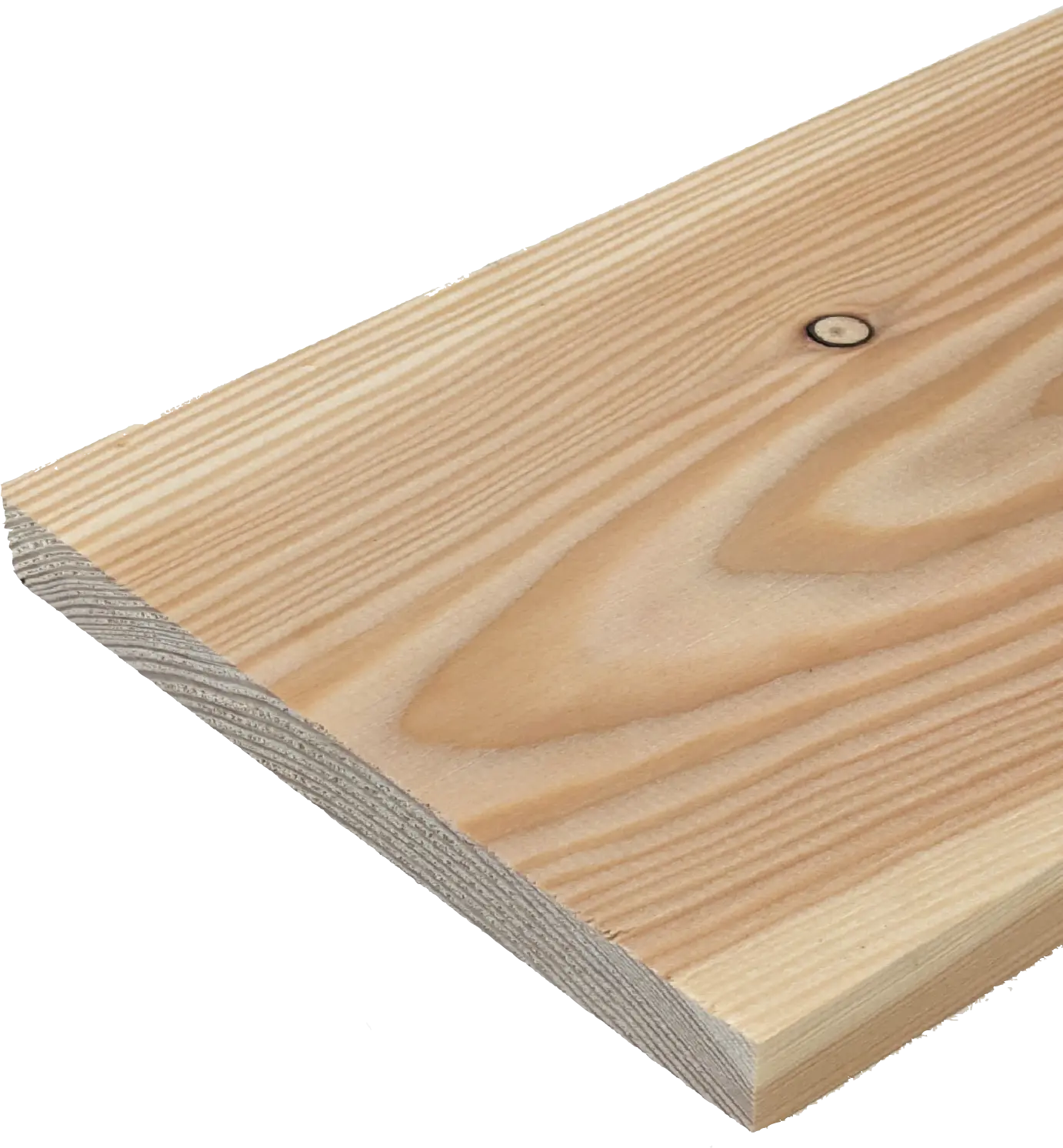 Made of carefully selected mix of European Larch (Larix decidua) grades. It typically features a straight grain with occasional waves, along with prominent growth rings that enhance its visual appeal. It typically has a coarse and uneven texture with numerous tight knots throughout, overall creating a rustic appearance. | 14-20% | 470-650 kg/m3 | Class 3: Moderately Durable | Medium | Stainless Steel |