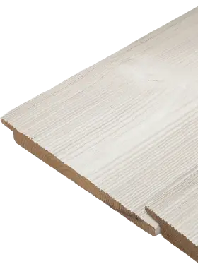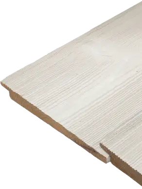 Strata is crafted from thermo-spruce (spruce that has been heat treated to remove moisture and alter the wood’s cell structure), a light, durable timber with a rich tone. It typically has a straight grain with frequent small to medium sized knots. Thermo-spruce is brushed to highlight the grain’s texture, then factory-coated to create a stable, low-maintenance product with a clean, modern look. While the outlines of knots remain visible for a natural appearance, their colour is concealed beneath the finish. Strata is available in the most popular feather edge shades. | 4-7% | > 380 kg/m3 | Unfished Thermo spruce: Class 2: Durable Desired service life (BS8417): Further Increased due to the preservative nature of the treatment used on Strata. | Small - Due to the thermal modification process carried out on this product, movement is minimal/virtually negligible. |